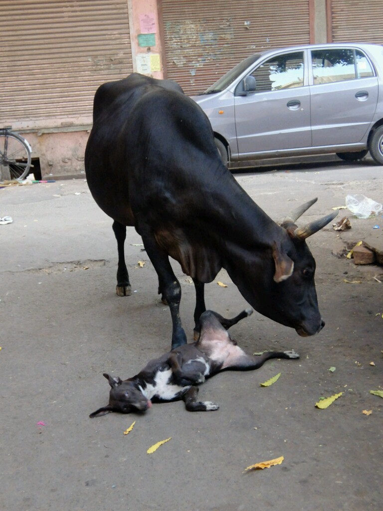 Heilige Kuh Kuh beim schmusen